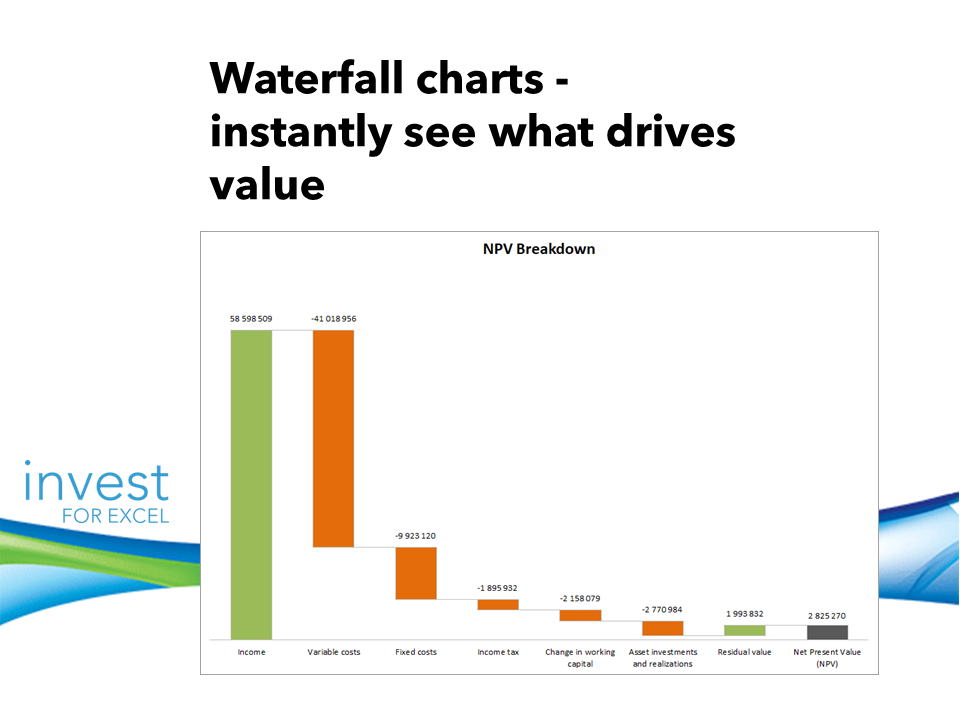 2. Waterfall charts for NPV analysis