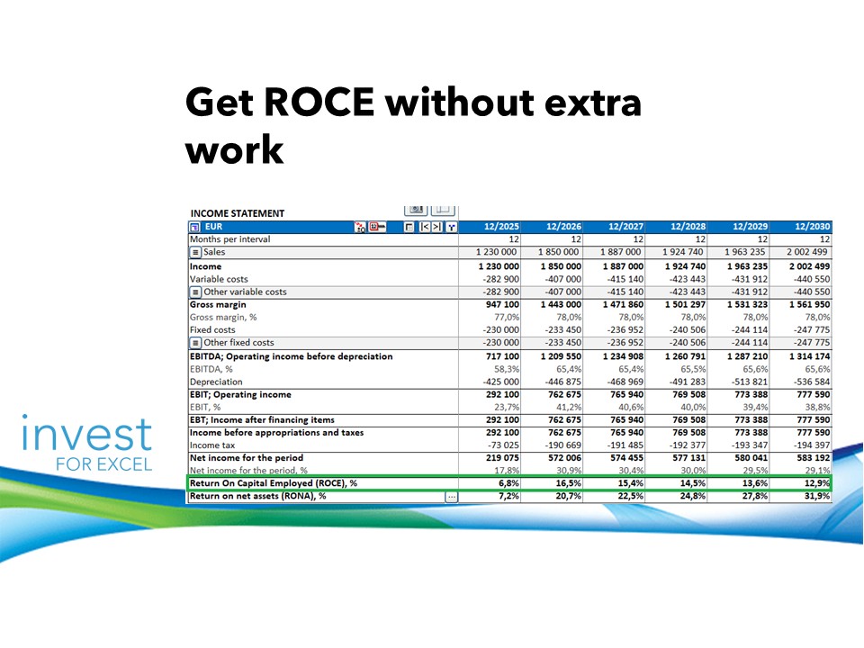 ROCE is now built directly into your Income Statement and Profitability Analysis, giving you immediate insight into how effectively capital is employed—without extra setup. The definition of capital employed can be adjusted in Options.