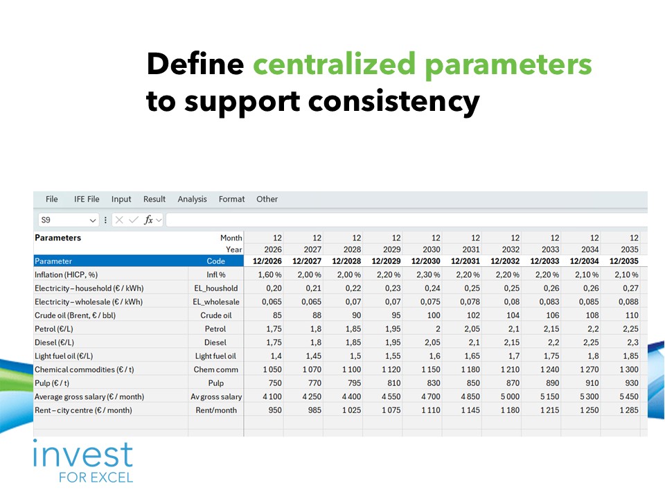 Control all your key assumptions in one place. Build and update projects and investment portfolio easily – thanks to the concept of centralized parameters.