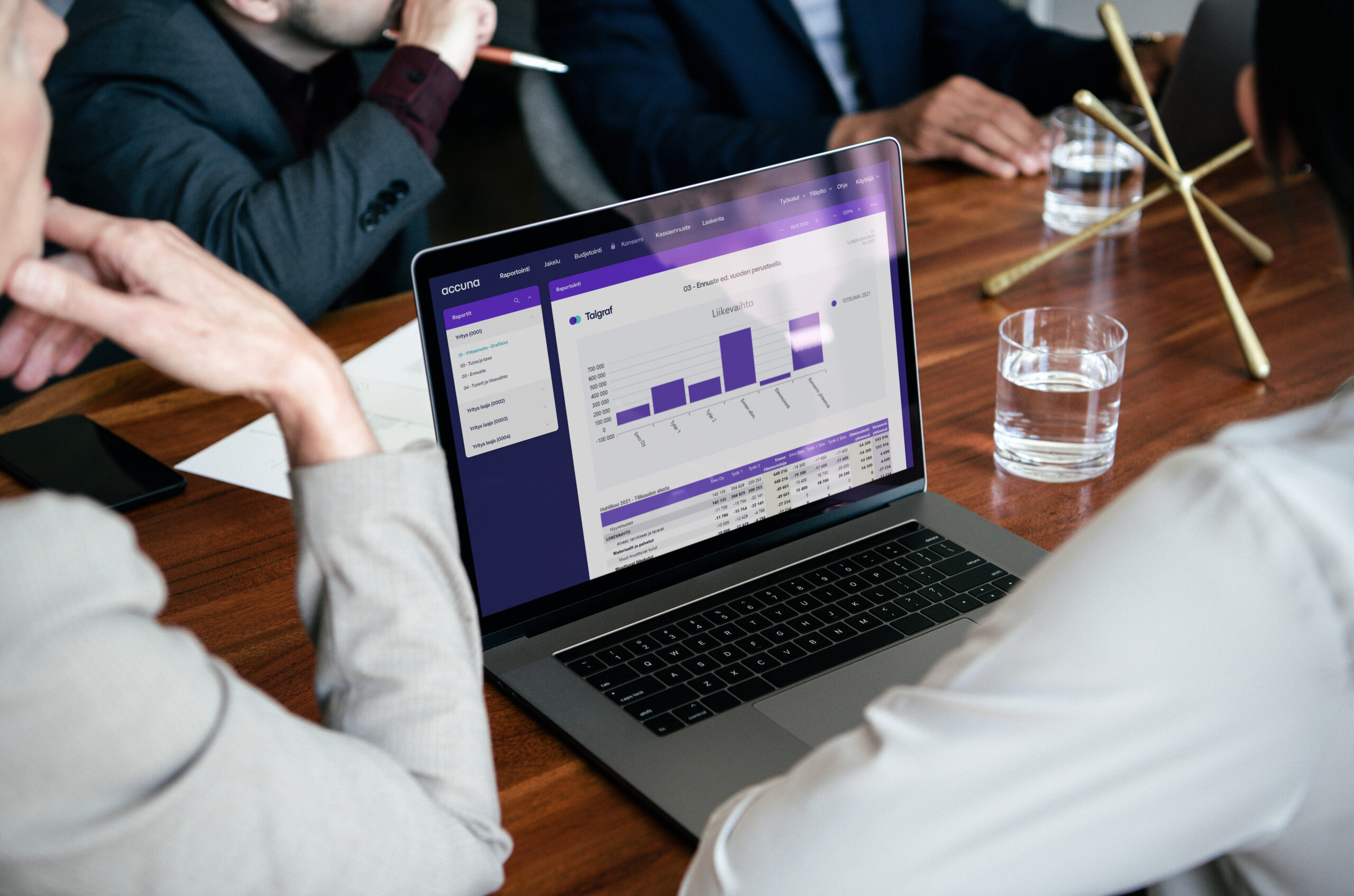 Saat automaattisuutta, tehokkuutta ja visuaalisuutta kaikkeen liiketoiminnan seurantaan. Accuna Raportointia voi käyttää täysin itsenäisesti tai ammattimaisen asiantuntijaverkostomme tukemana.