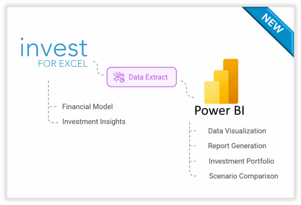 Använd en ny funktion för Dataextraktion i Invest for Excel® version 4.2, utgåva Pro och Enterprise. Extrakta data från finansiella modeller som skapats i Invest for Excel®-beräkningsfiler med bara ett klick (tryck på en knapp). Använd dataextraktion på olika sätt, till exempel: